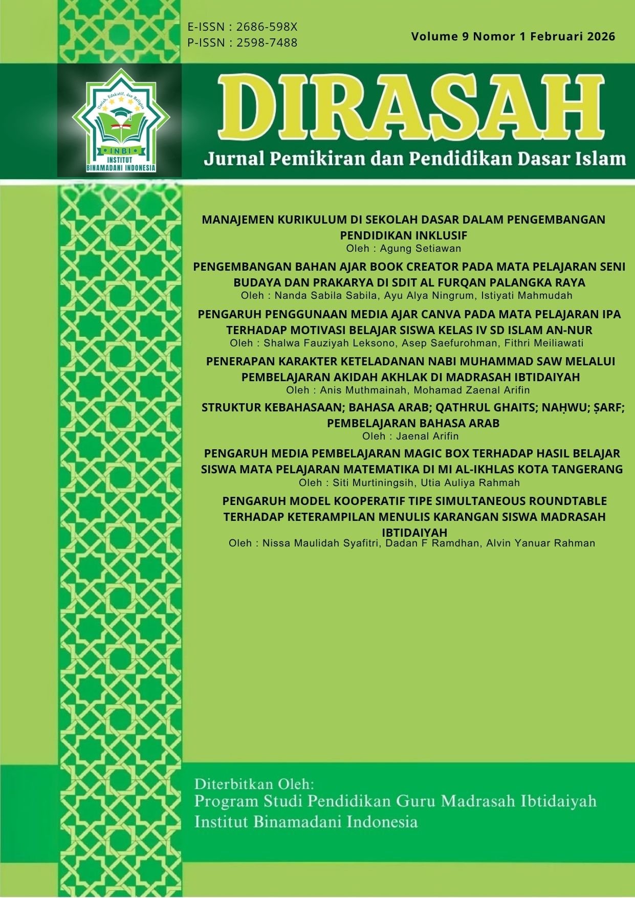 https://doi.org/10.51476/dirasah.v9i1.804Keywords: